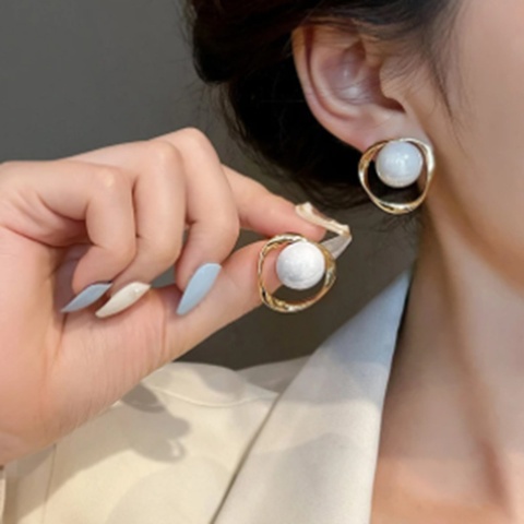 Pendientes redondos geométricos retro; alta sensibilidad; joyería de perlas de imitación; lujo; material de aleación; uso de regalo.